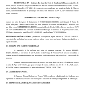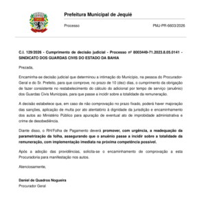 O gestor municipal foi intimado por duas vezes pelo juiz responsável para regularizar a situação. O jurídico do SINDGUARDAS/BA representado pelo escritório de Dr. Davi Pedreira e Dra. Emilli Dórea requereu que as intimações ocorressem de forma pessoal, que vieram acompanhadas de advertências severas, Entre elas, destacam-se a aplicação de multas pessoal e responsabilização por crime de desobediência. Assim, a pressão sindical somadas à ação judicial foi determinante para o desfecho favorável aos Guardas Civis Municipais.