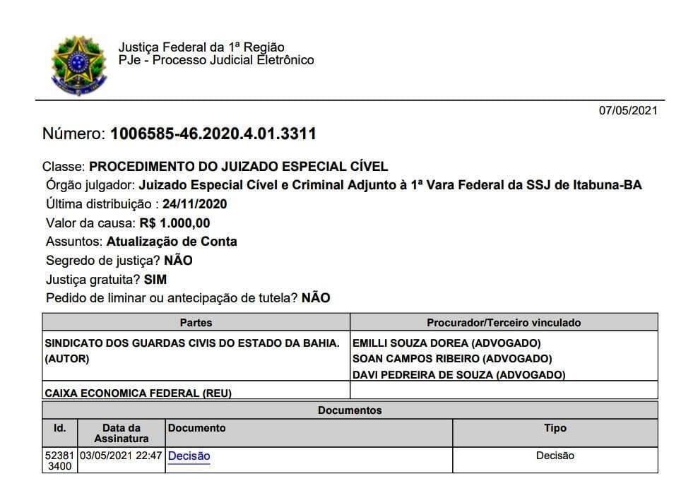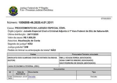 A ação tramitou inicialmente na Vara Federal de Itabuna, entretanto, este mês, o Juiz Federal enviou a ação para ser julgada na Vara Federal da cidade de Ilhéus, por entender que a ação deva ser processada no município onde se encontra a sede do Sindicato.