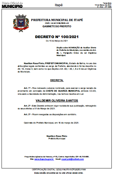 O Prefeito da cidade de Itapé, Naeliton (PP), é mais um gestor que ignora, pra não falarmos “rasga” o Estatuto Geral das Guardas Municipais, Lei Federal 13.022 que está em vigor há mais de sete anos (2014). Naeliton (PP) nomeou em Março deste ano, Valdemir Oliveira Santos, como Chefe da Guarda Municipal de Itapé, prática vedada pelo Estatuto Geral das Guardas Municipais. Militar, Valdemir é um servidor considerado “estranho” aos quadros da Guarda Municipal.